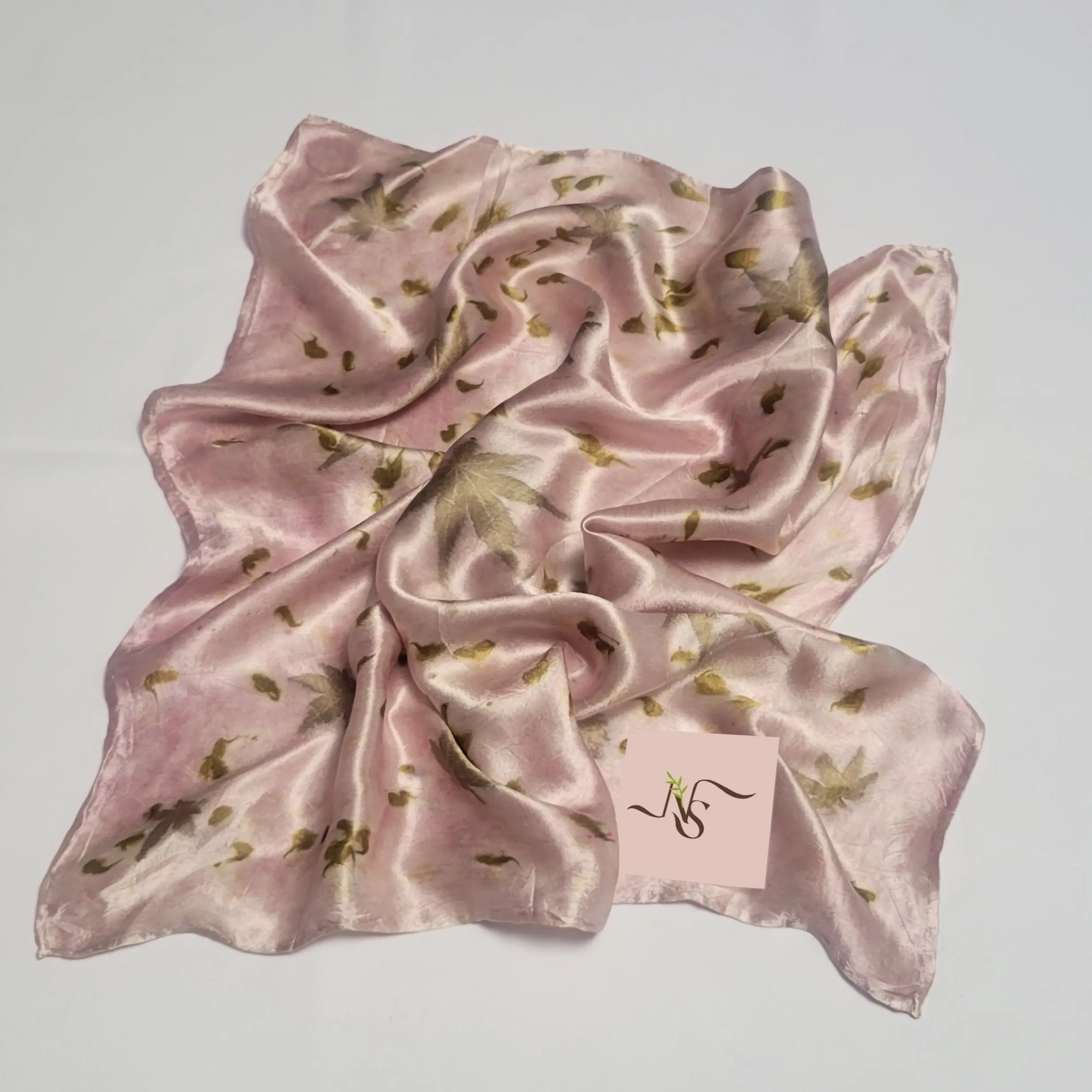 • Satin silk, naturally dyed and eco-printed with actual leaves petals.