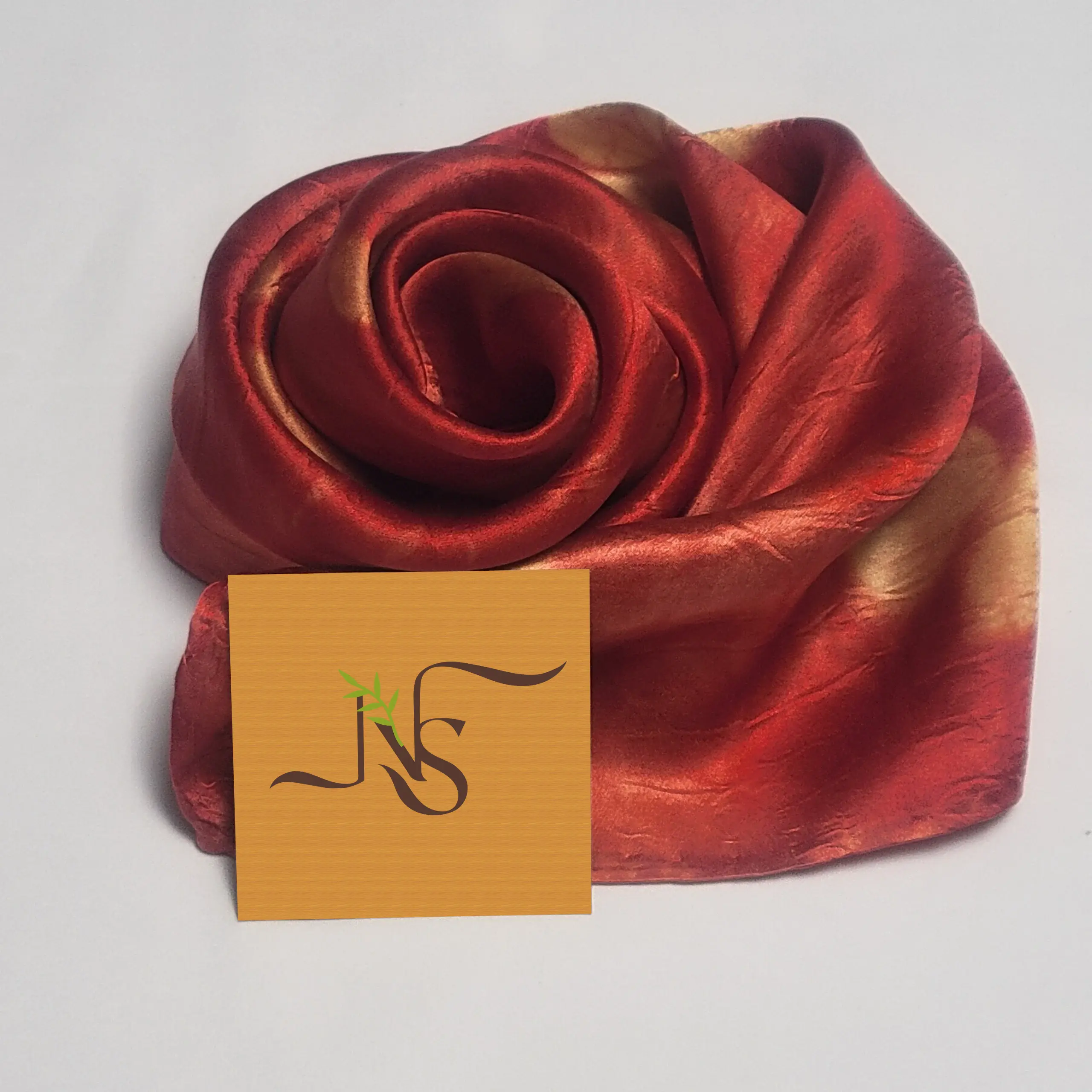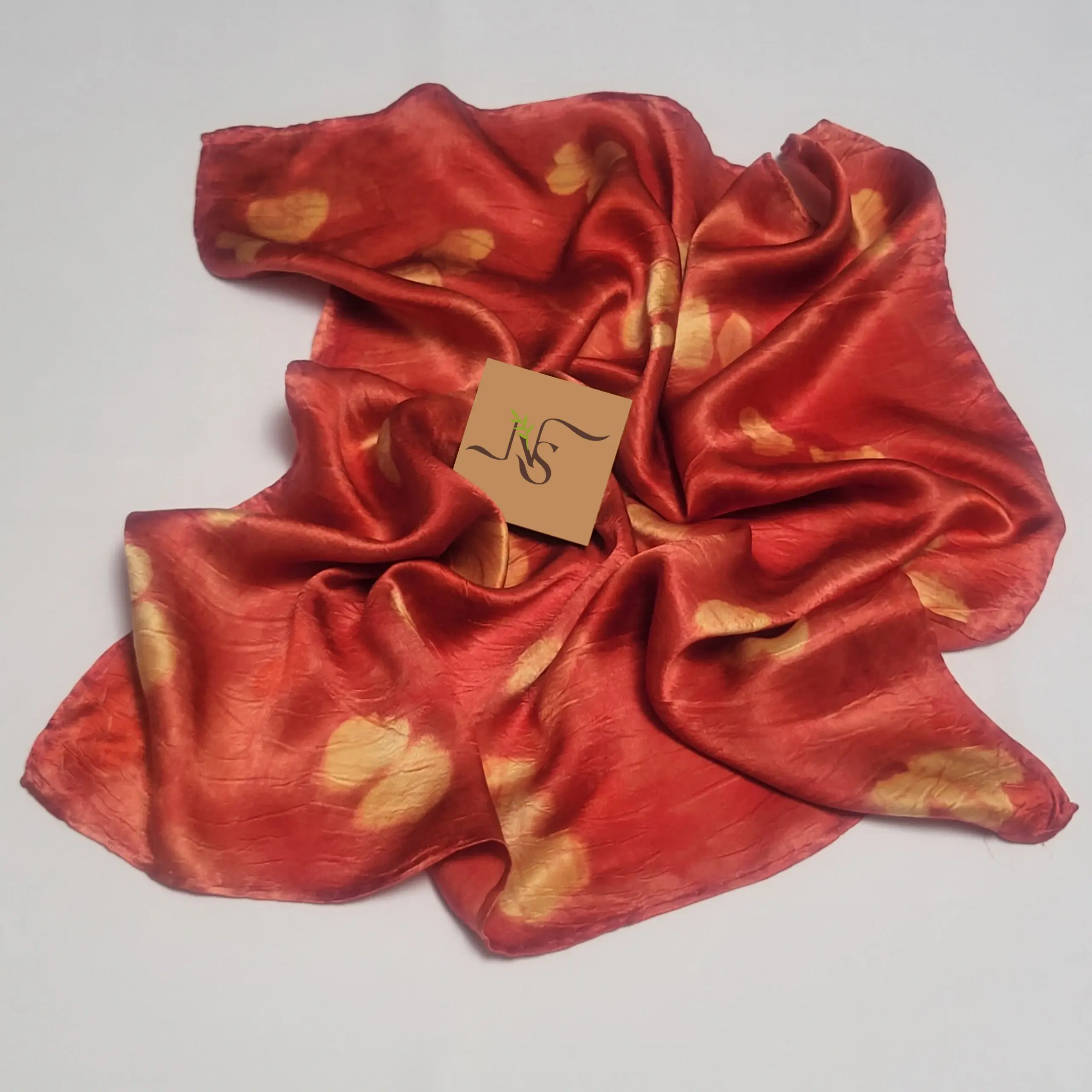 This ravishing red scarf holds beautiful golden imprints of sorrels!