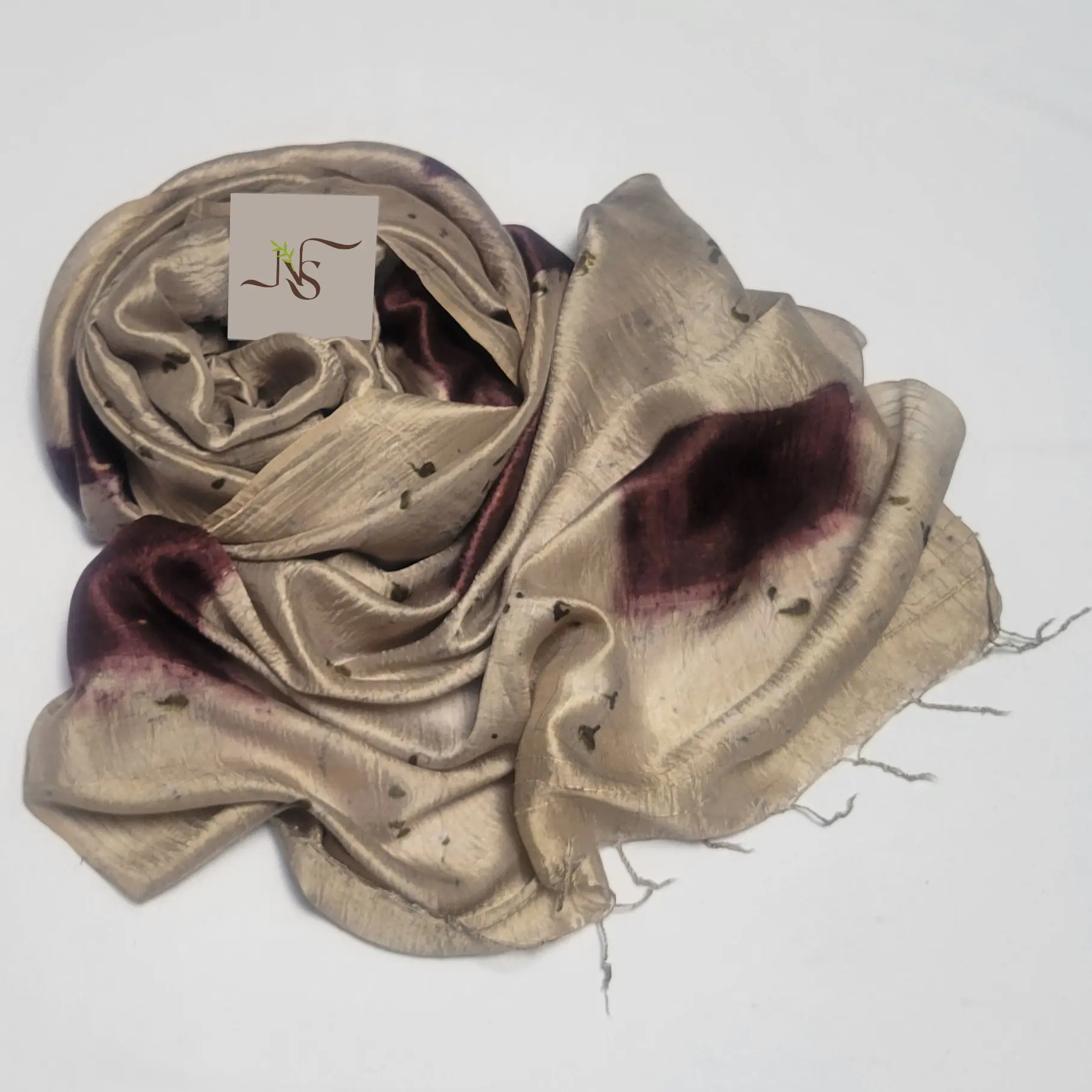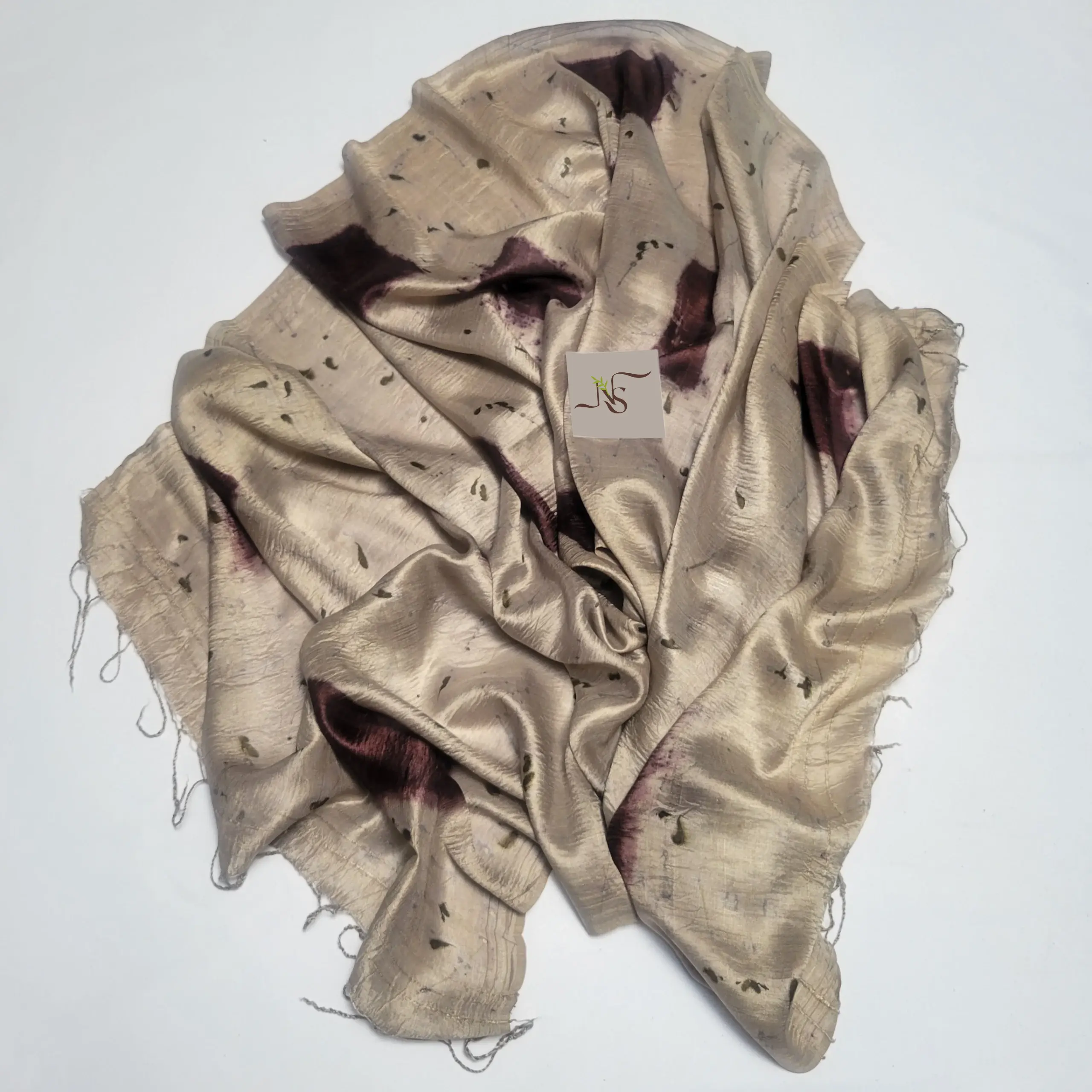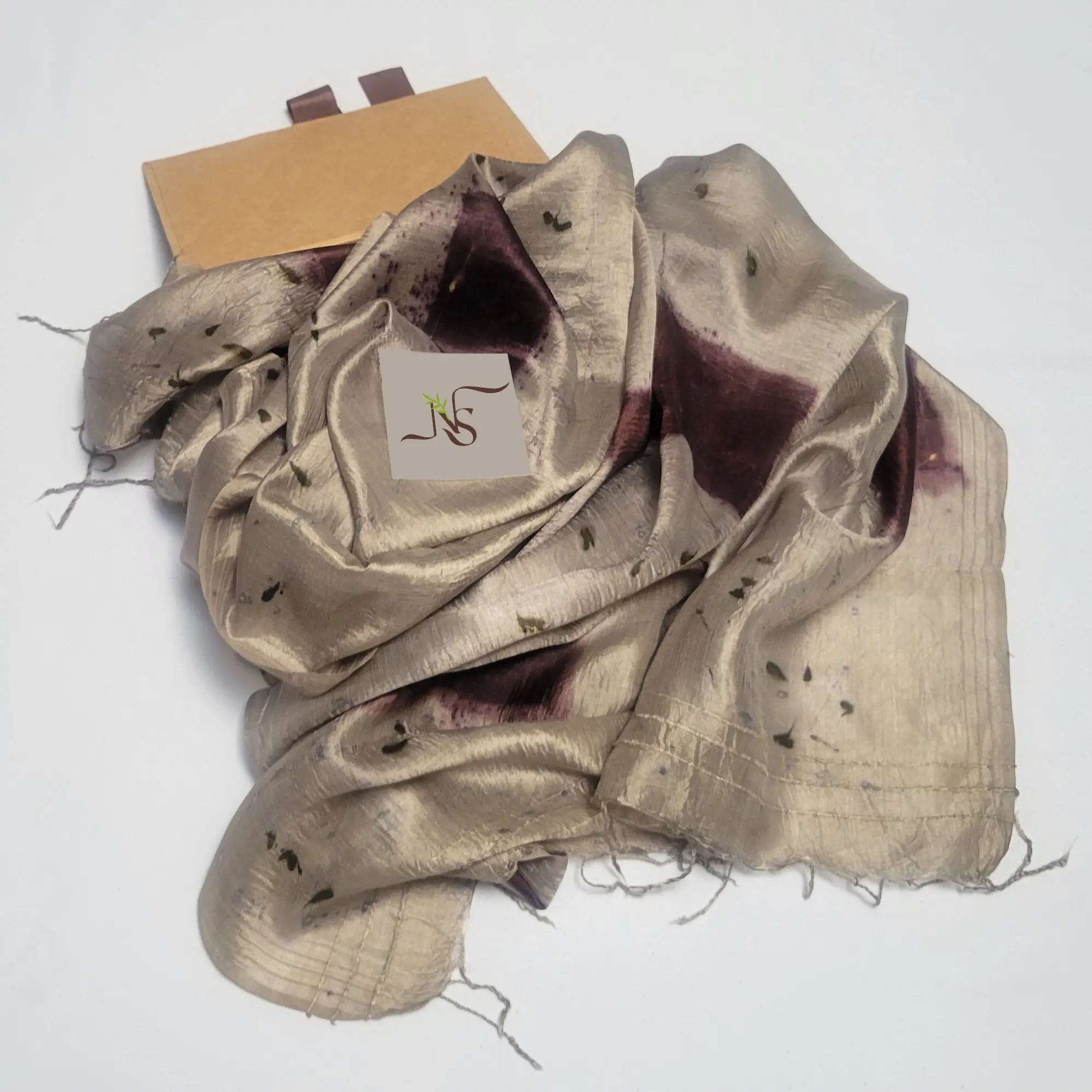• Handwoven Mulberry silk, naturally dyed and eco-printed with actual leaves.