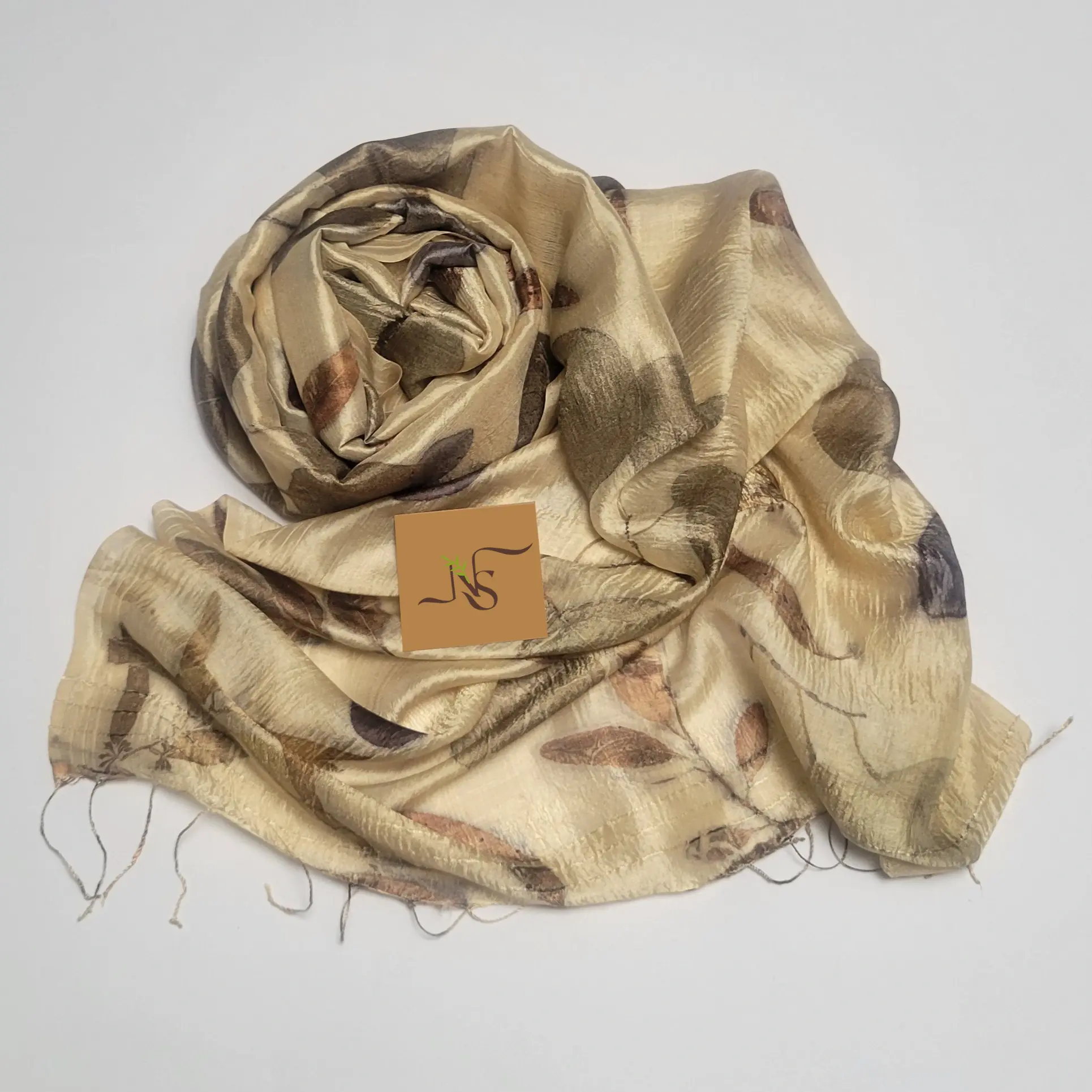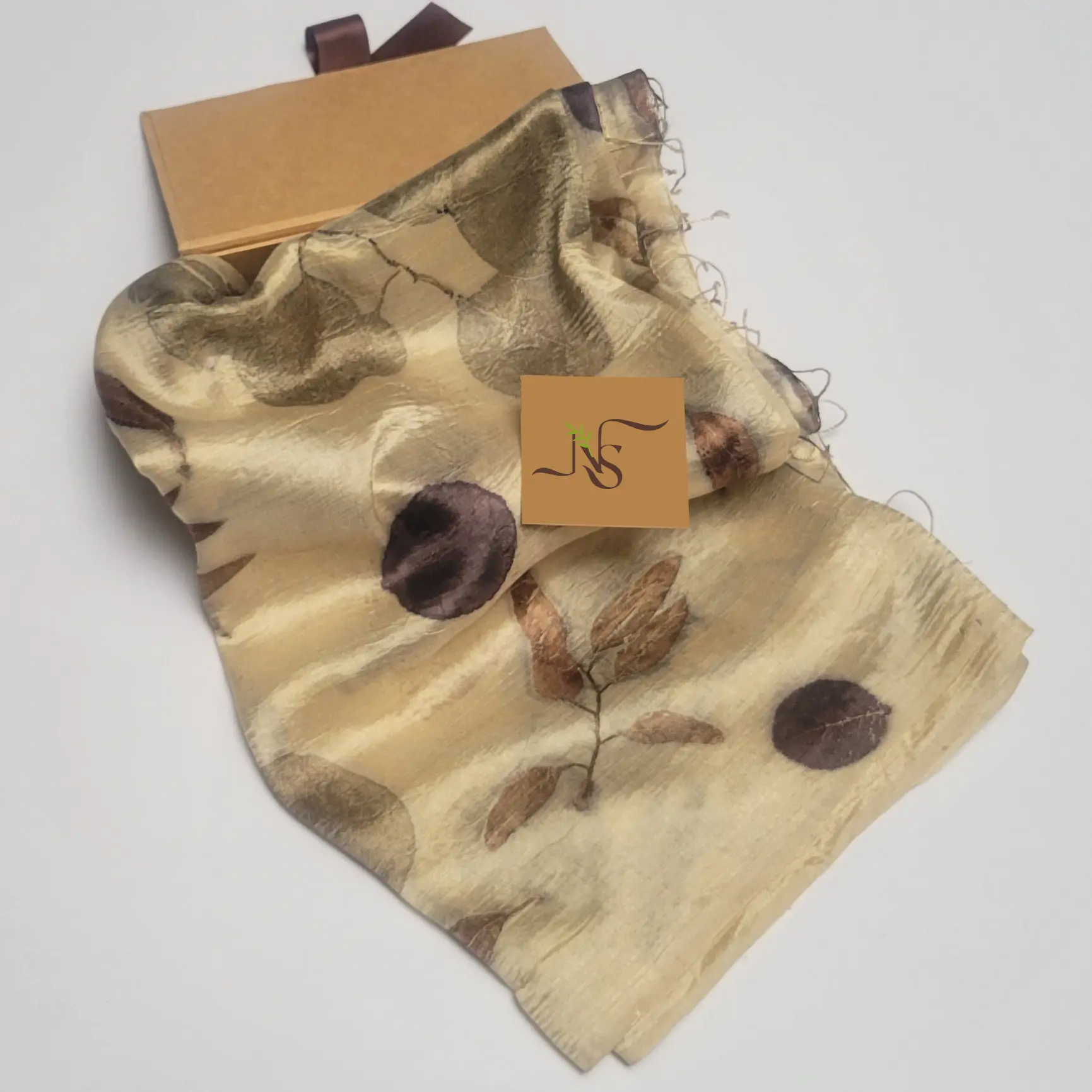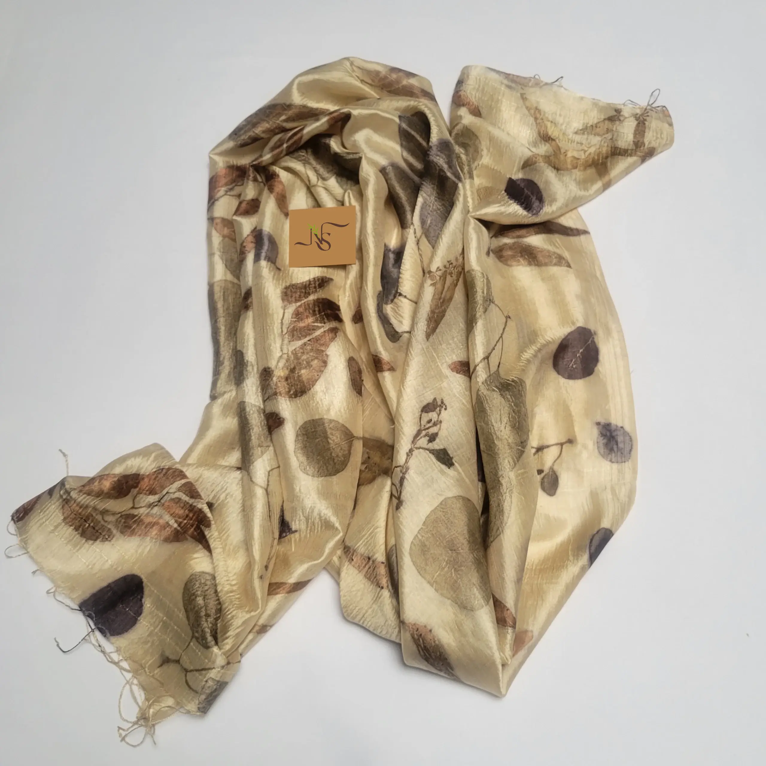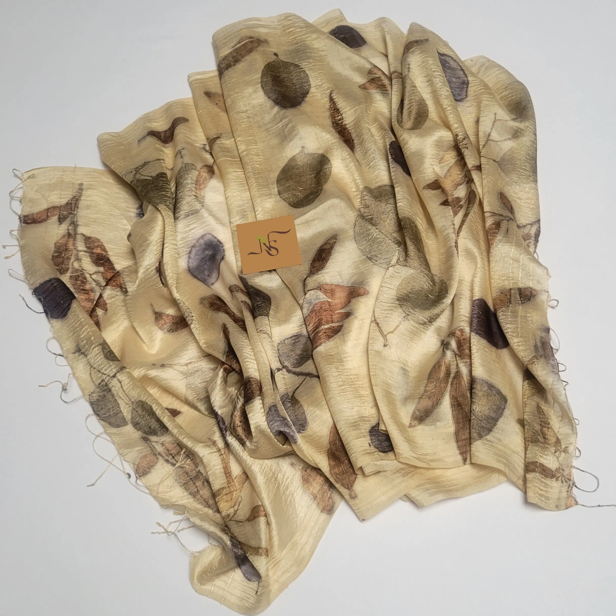 The vibrant imprints of the eucalyptus and cotinus leaves make this beige stole stand out!