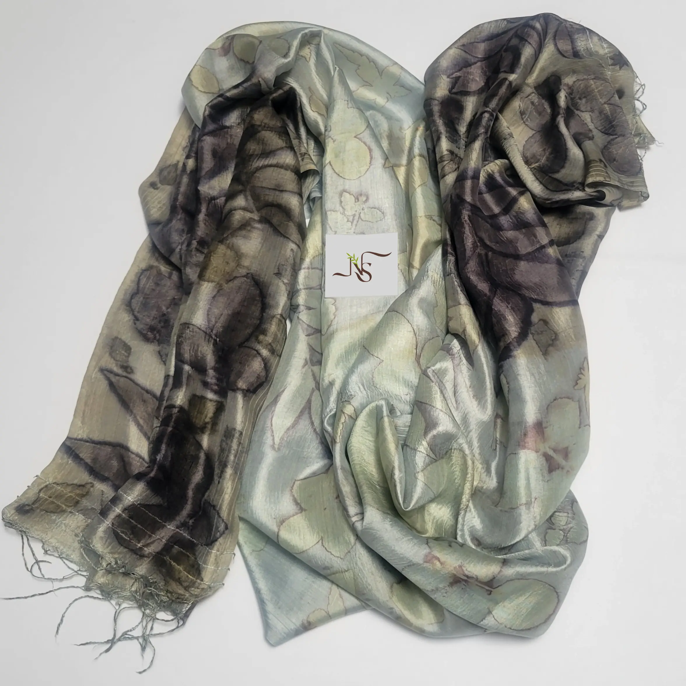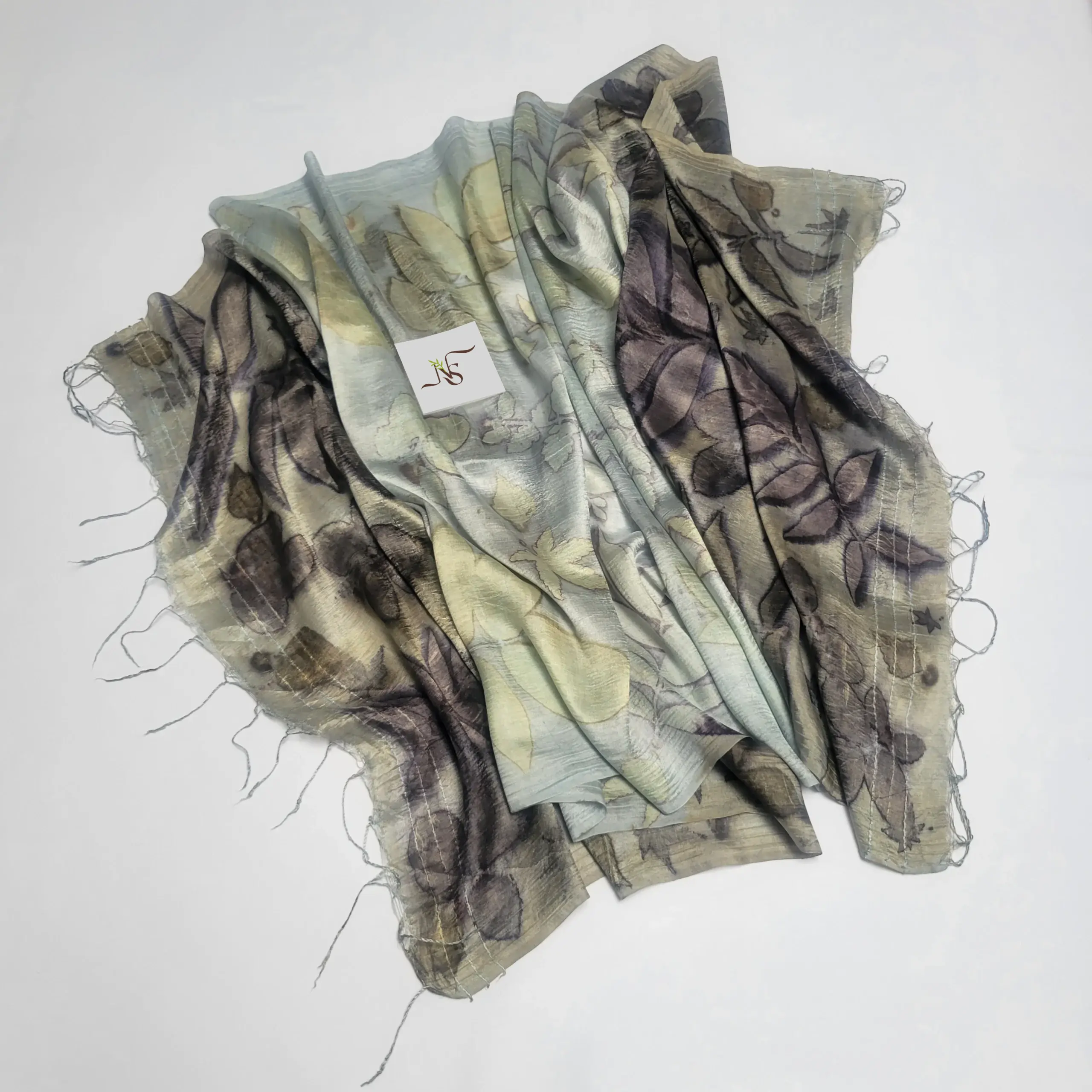 • Handwoven Mulberry silk, naturally dyed and eco-printed with actual leaves. The fabric may contain some irregularities in the weave, which are characteristic of any handwoven fabric.