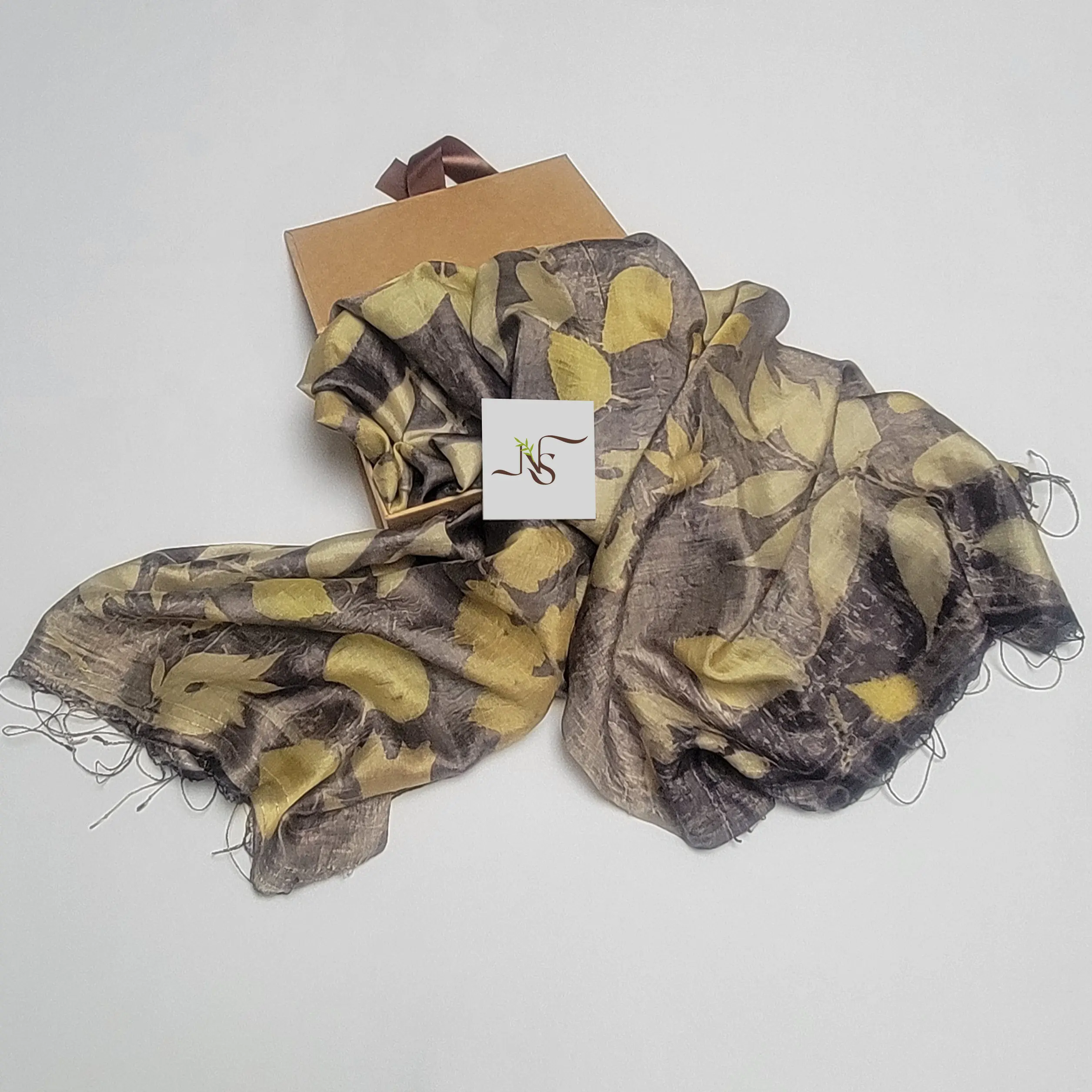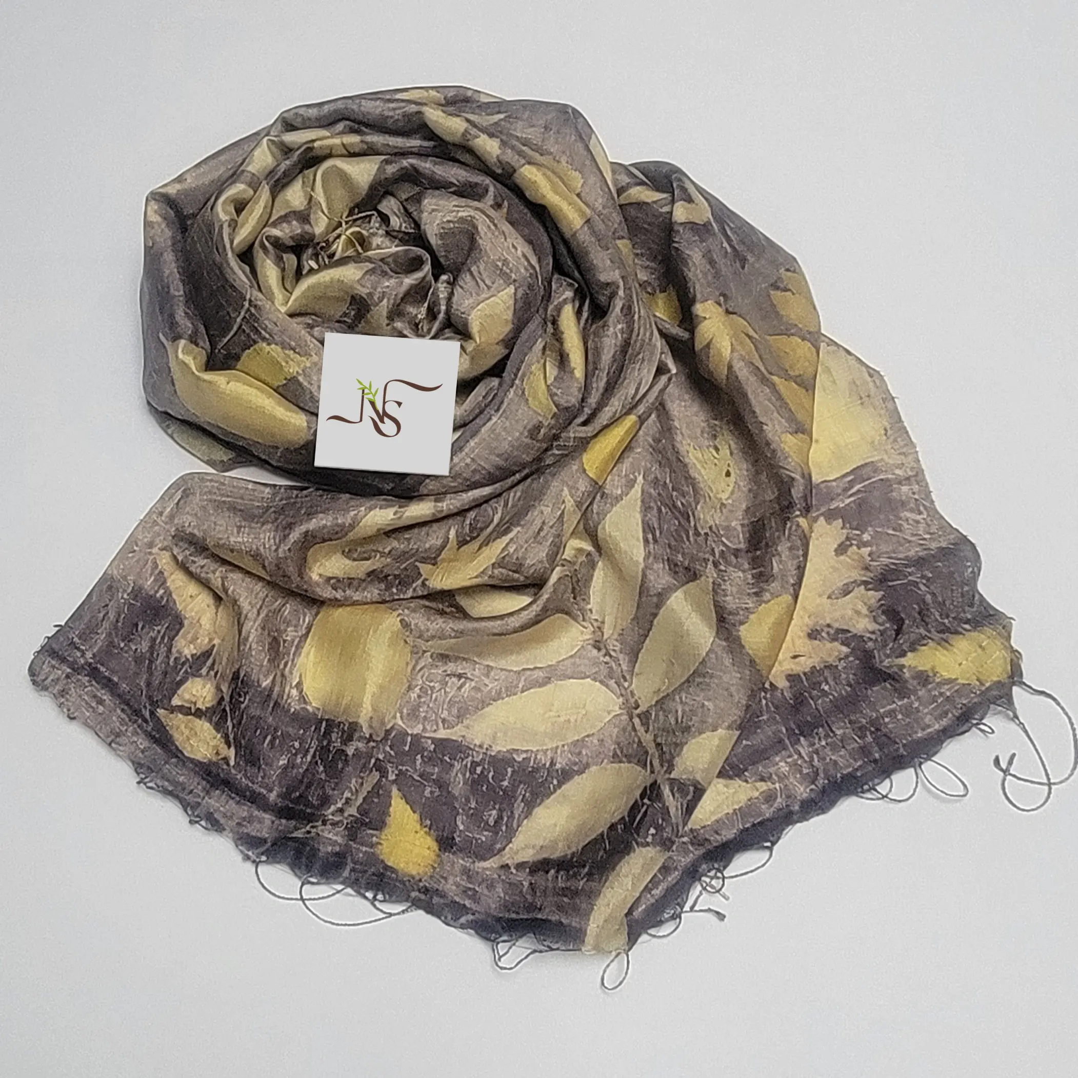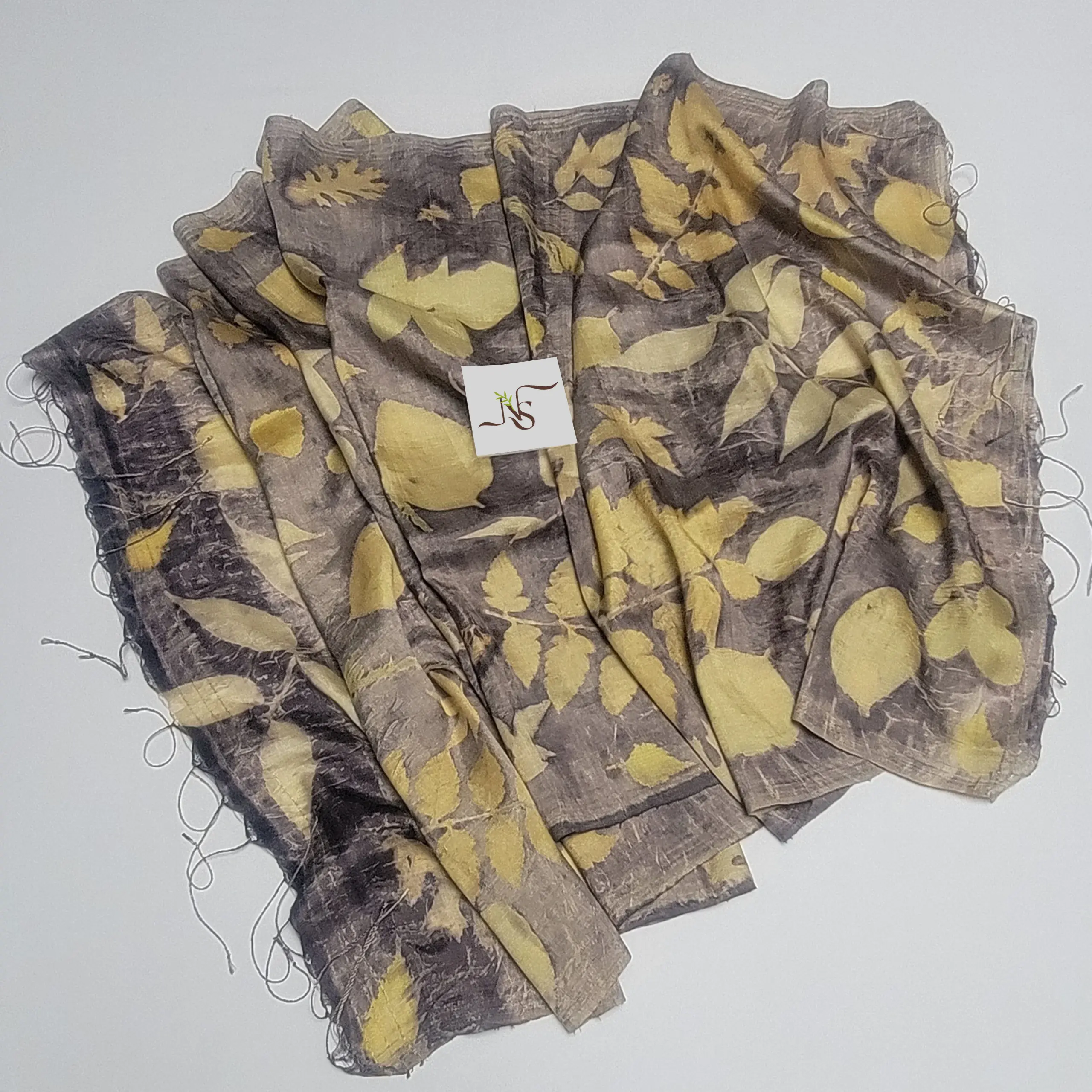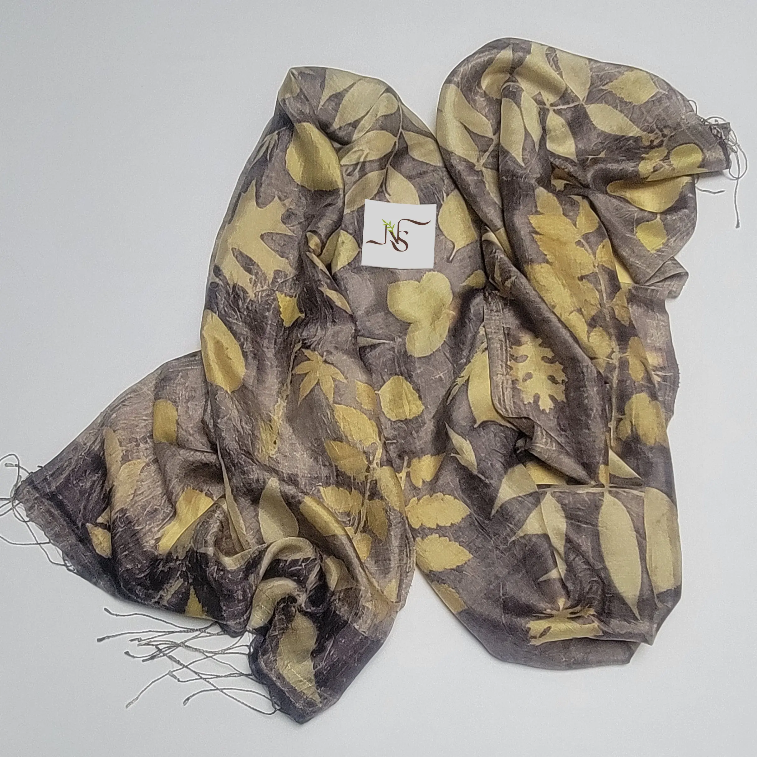 • Handwoven Mulberry silk, naturally dyed and eco-printed with actual leaves. The fabric may contain some irregularities in the weave, which are characteristic of any handwoven fabric.